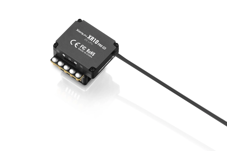 Elektronický střídavý regulátor řady XeRun 150A pro senzorové i bezsenzorové motory s max. špičkovým proudem až 1000 A, vestavěným SBEC obvodem 5-7,4V/5A a programovatelný přes LCD programovací box PRO nebo OTA Bluetooth programátor. Optimalizovaný pro modifikované cestovní vozy, driftovací, rallye a F1 auta v měřítku 1/10, buggy a short course trucky 1/10. Pro motory 3650 (540) od 4,5 závitů (off-road od 5,5 závitů), napájení 2S LiPo, inteligentní ventilátor.