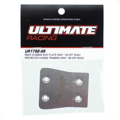 Zadní ochranná deska podvozku Ultimate Racing pro Xray 1/8 Off Road. Tato zadní deska (skid plate), určená pro platformy XB8 23 a 24, nabízí zvýšenou ochranu podvozku před opotřebením. Je vyrobena z 0,5mm nerezové oceli a je jedním z nejjednodušších způsobů ochrany vašeho vozidla. Balení obsahuje jednu desku stříbrné barvy s laserovým gravírováním Ultimate Skid Plate.