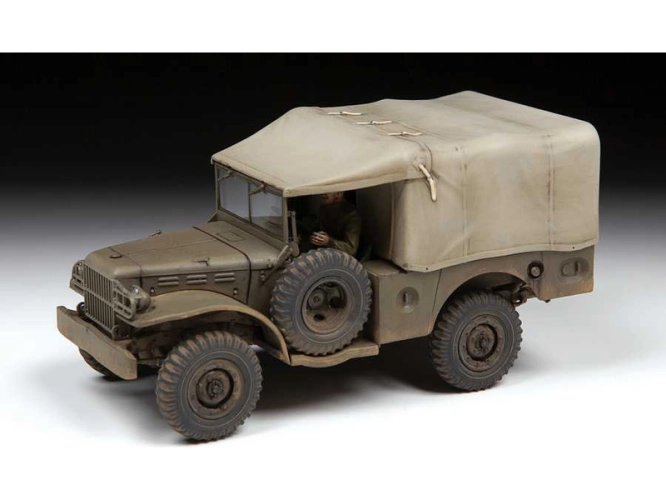 Plastikový model Zvezda 3656 - americké armádní auto Dodge WC-51 "THREE QUARTERS" v měřítku 1:35 ke slepení. Stavebnice obsahuje 270 dílků, délka 121 mm.