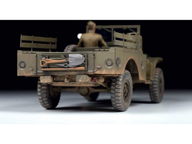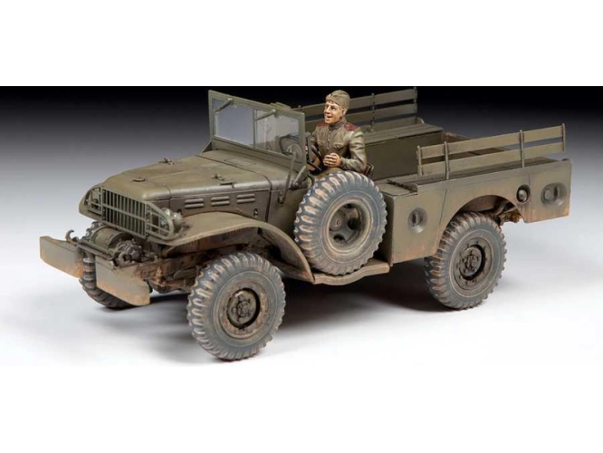 Zvezda plastikový model vojenského užitkového vozidla Dodge WC-52 z druhé světové války ke slepení. Měřítko 1:35, délka 128 mm, stavební náročnost 4.